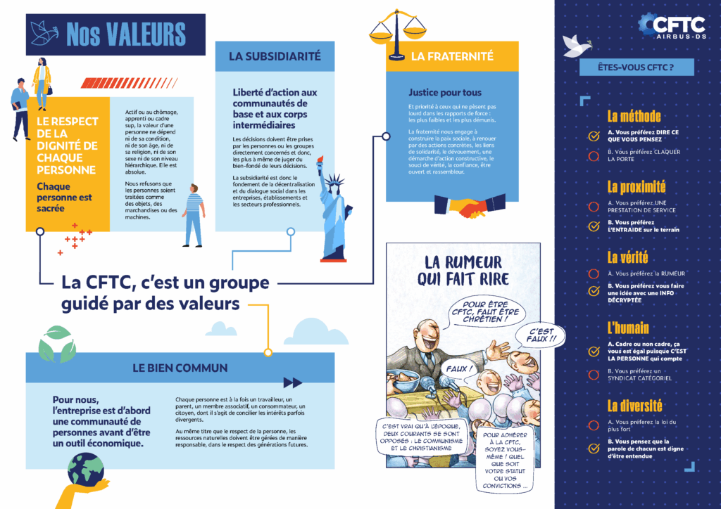 La CFTC est un syndicat de dialogue, c’est est un outil privilégié pour rechercher, à chaque occasion, le « gagnant-gagnant », pour les salariés comme pour l’entreprise, qui est elle-même considérée comme un bien commun. Lisez le projet CFTC pour en savoir plus.